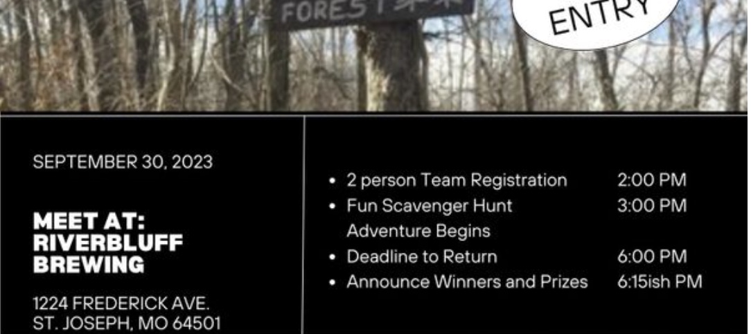 Meet at River Bluf Brewing at 2PM. From there you'll get a list of "clues", that will guide you and your partner (teams of 2).